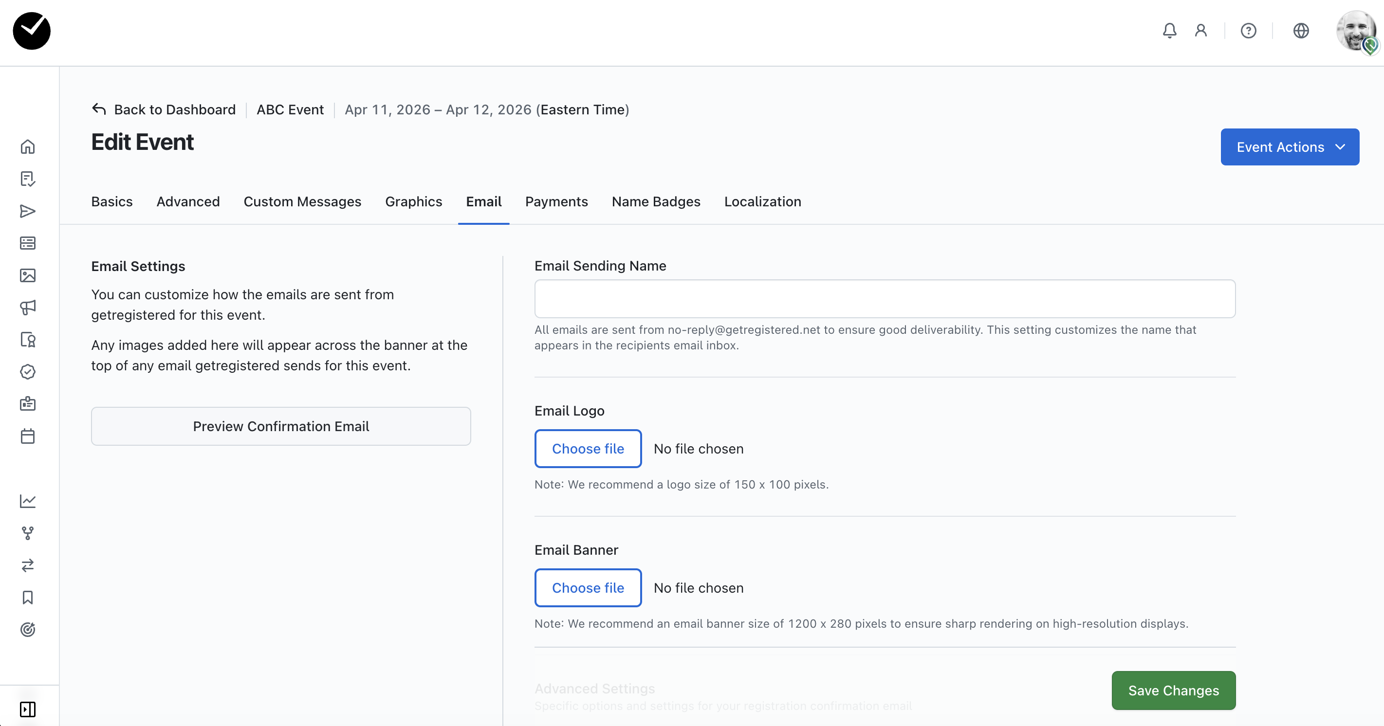 Now all email communications from getregistered® sent to attendees in regards to your event will use your 'Email Sending Name':