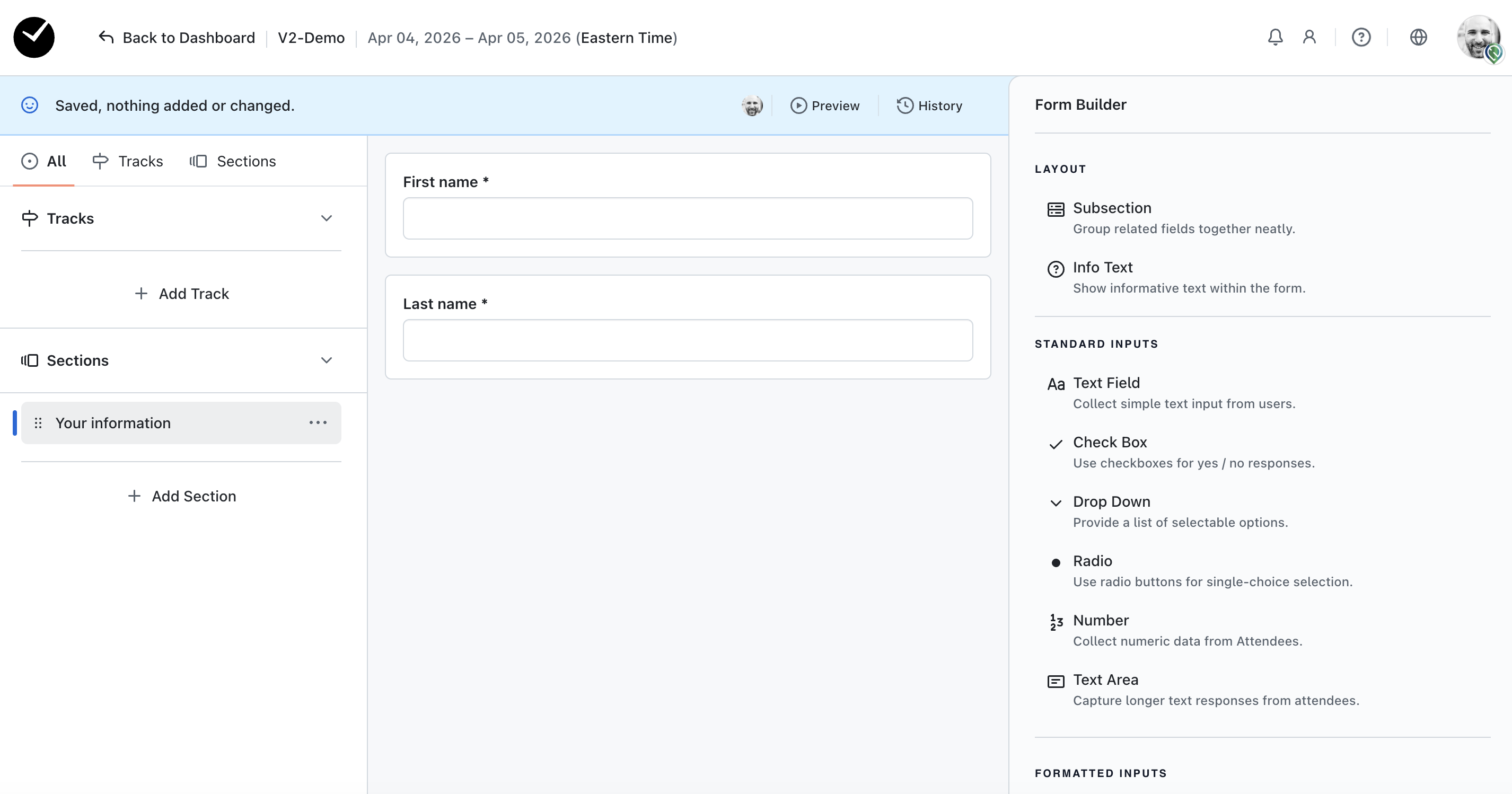 To learn more about adding pages, fields and tracks to your event form, we have some more in-depth articles available for you: