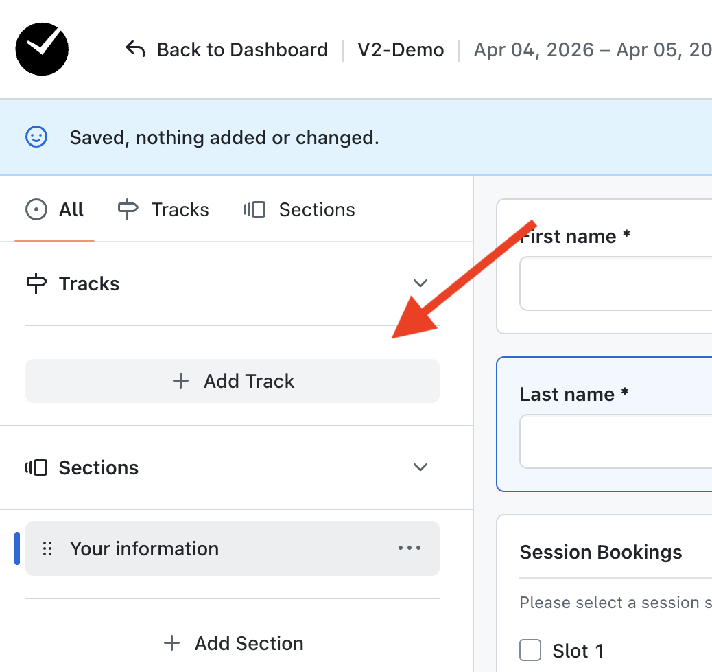 When you are ready to save your track, click on the 'Add Track' button, and your new track will now be available for event registrations (depending on availability/capacity set).