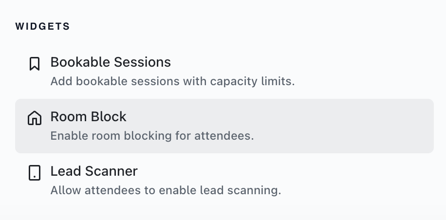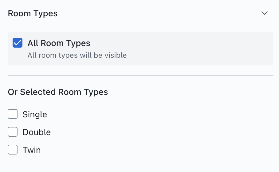 Under this menu you can choose if you wish to show all Room Types to attendees, or limit to specific ones.
