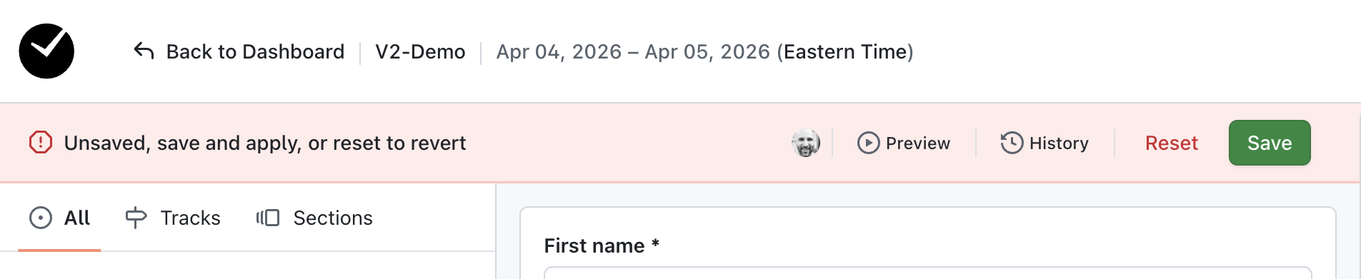 Your 'History' displays every change sorted by newest-first, showing exactly who made your changes and when. You can also undo changes made to your event form via the 'History' window by clicking on the red circular arrow icon with a '-' in the middle - simply select this and click 'Undo Changes' to revert the change:
