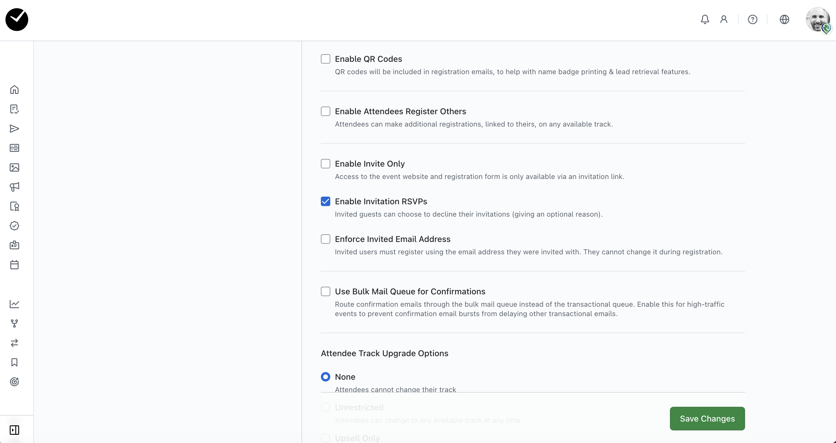 In your 'Advanced' Event Settings tab, you have the option to 'Enable Invitation RSVPs', which means that guests can decline an event invitation and if required, provide a reason for their decline.