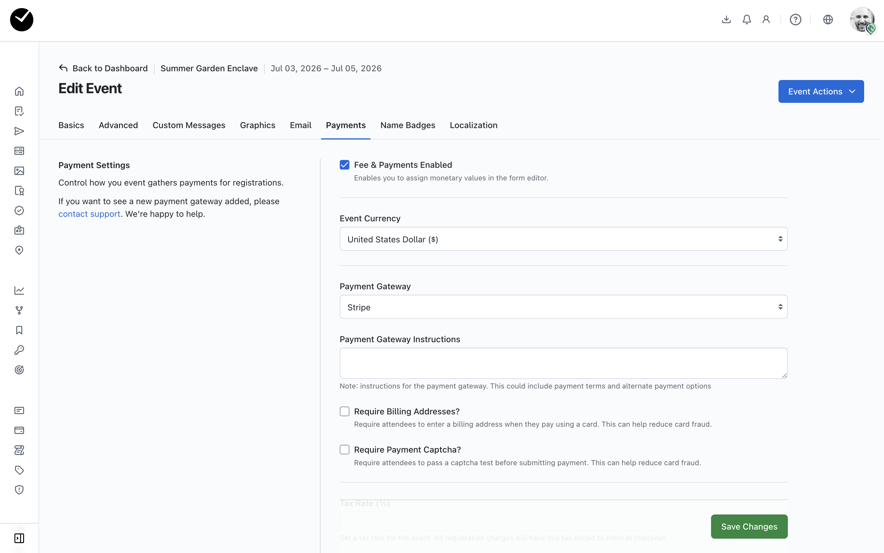 You also have the ability to set a payment gateway to collect revenue during registration, add tax to payments and accept offline payments such as checks and wire transfers.