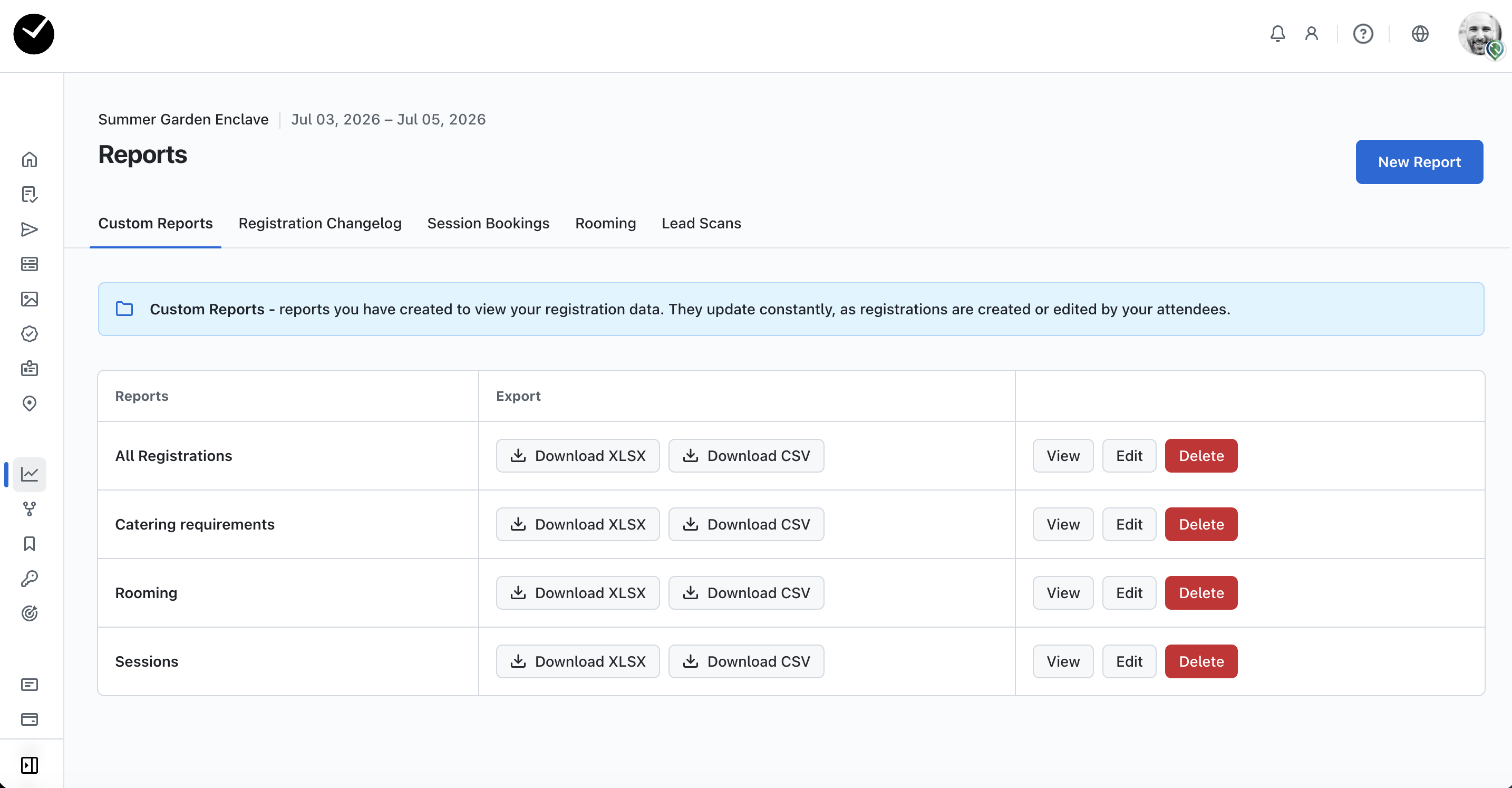 When you've created a custom report and you wish to download your report data, simply head to the 'Reports' area on your event dashboard.