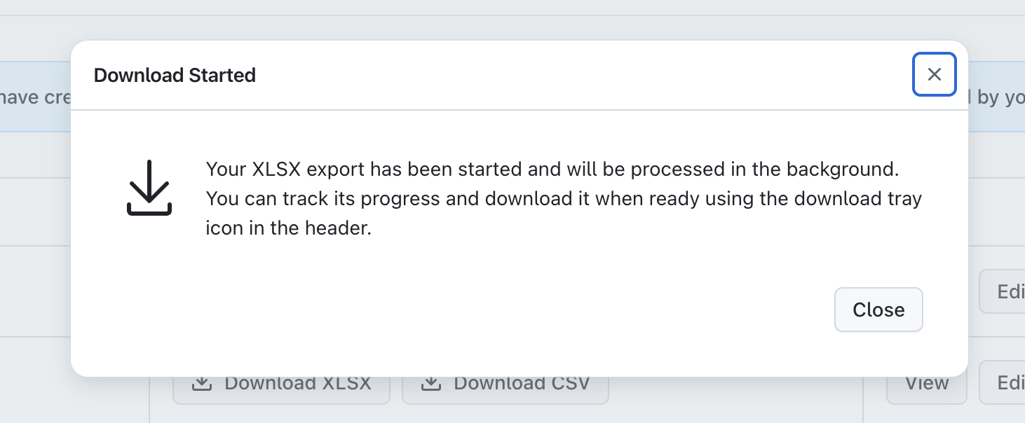 You will then see the 'Download Started' window displayed, and the report will then be generated in the background, exactly the same as generating your report download from the main 'Reports' page. When downloaded, you will see the customizations made to your report present in your selected file choice.
