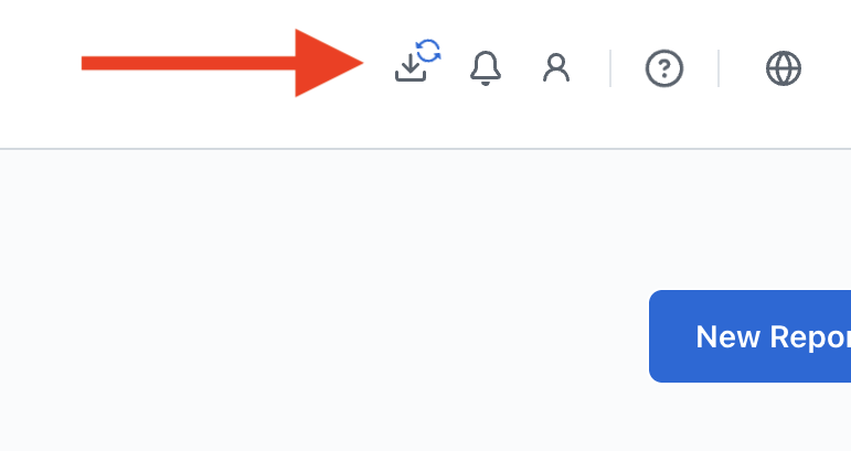 You will now see a 'download' tray displayed at the top right of the page - when a report is being processed, you will see a spinning circle icon next to the download tray, and clicking on the download icon will show the queue of reports being processed or that are ready to download.