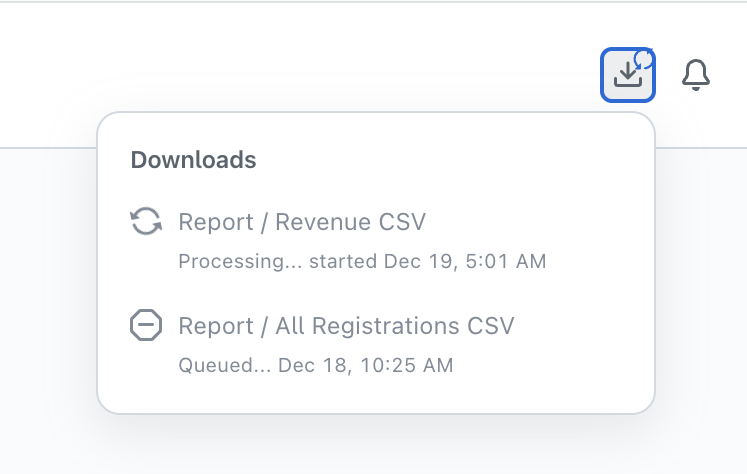While your custom report download is being processed, you can navigate away from your Reports area - the download tray is displayed in all areas of your event, so you can easily access your download at any time!