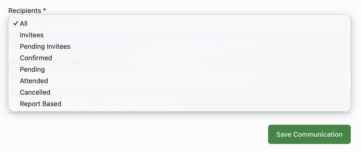 Status types are pretty much self-explanatory - select your audience based on the status of each attendee, any attendee with a status matching your selected criteria will become part of your campaign audience.