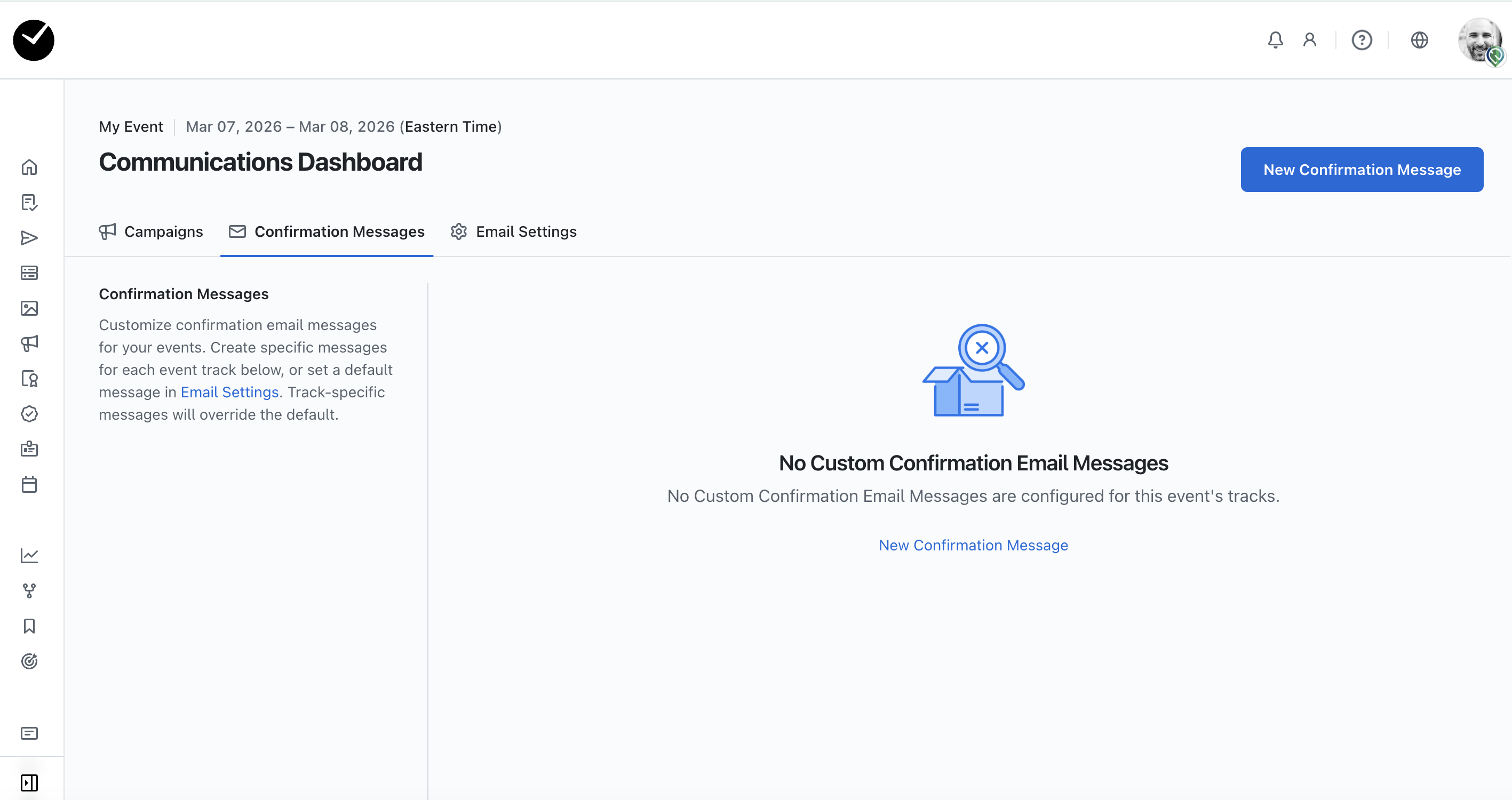 If you do not wish to create an email campaign, and just wish to customize your event confirmation emails, click on the 'Confirmation Messages' tab.